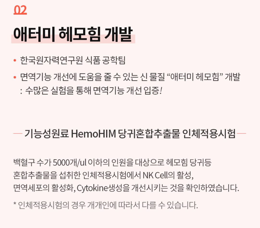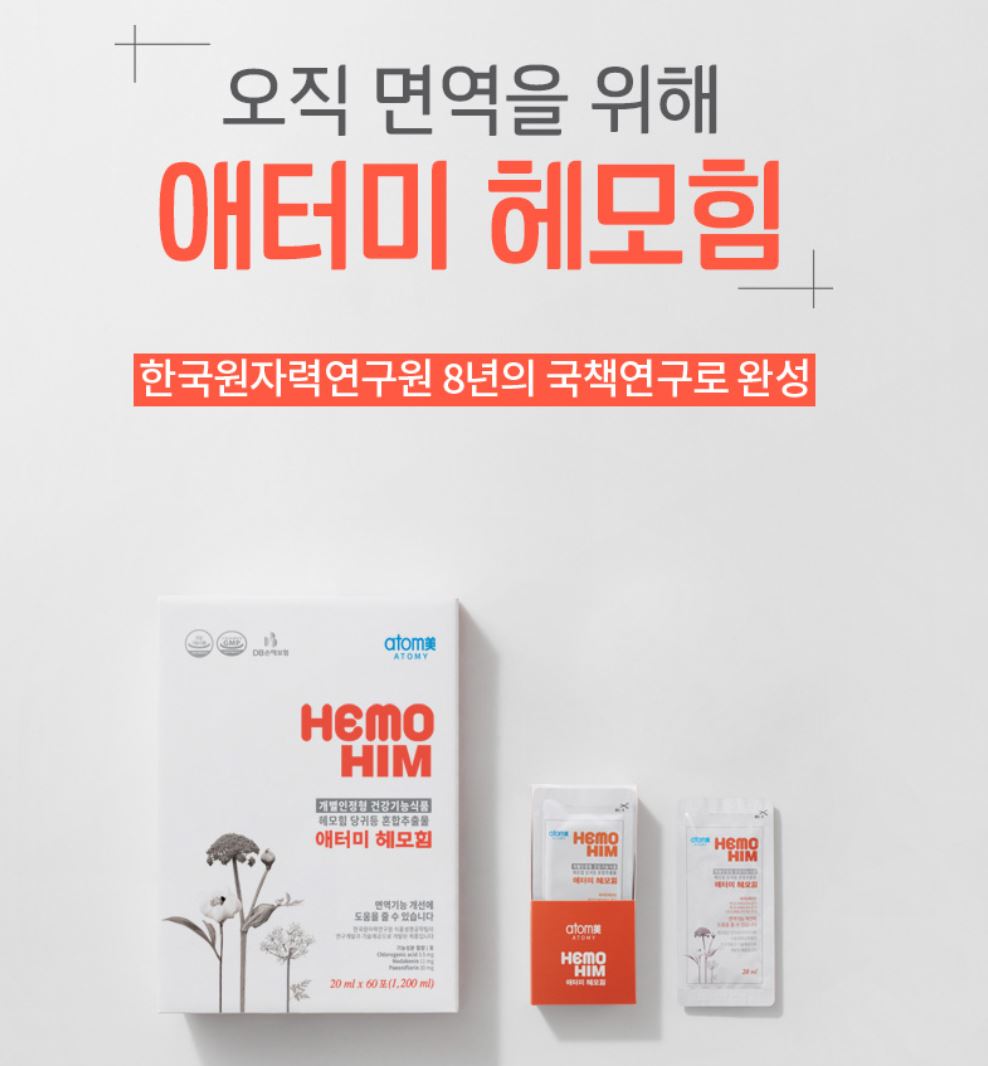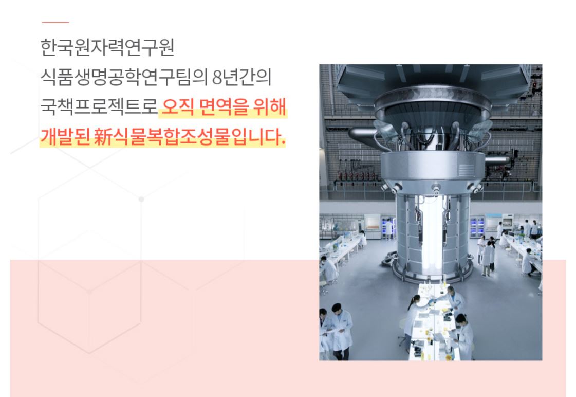 헤모힘은 오직 면역을 위해 한국 원자력 연구원엣서 8년간의 국책연구를 통해 탄생한 제품입니다.
