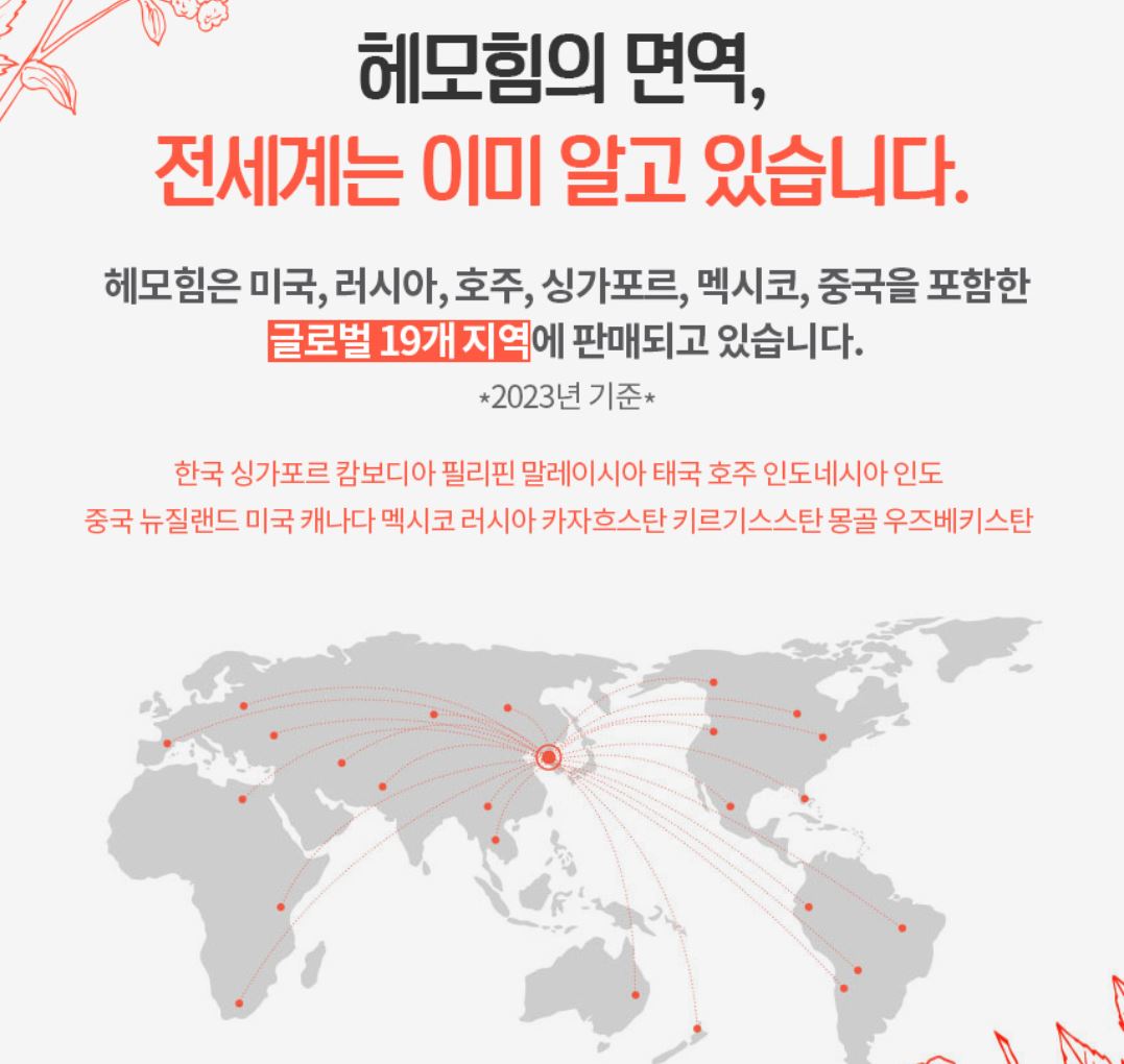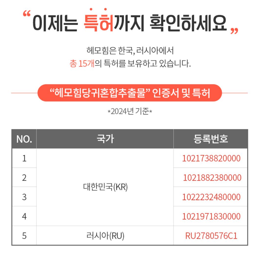 이러한 헤모힘의 효능이 우리 나라에서뿐 아니라 세계적으로도 알려진 정말 우수한 제품입니다.