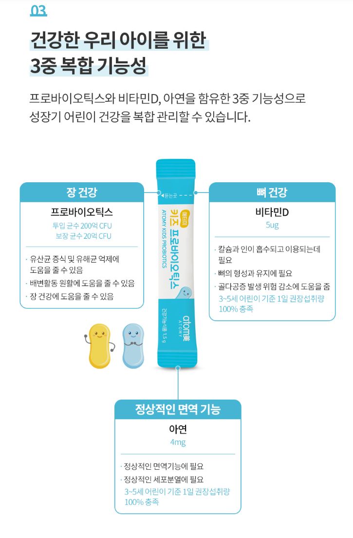 3. 우리 아이 건강을 위한 3증 복합 기능성 / 20억 CFU 프로바이오틱스 + 비타민D + 아연
