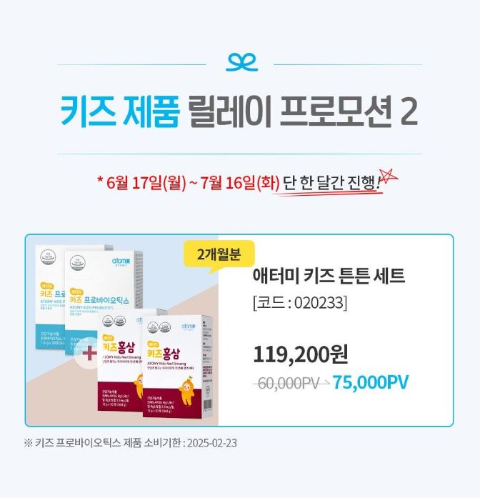 애터미 키즈튼튼세트! 구성 : 애터미 키즈홍삼 2box + 키즈프로바이오틱스 2box