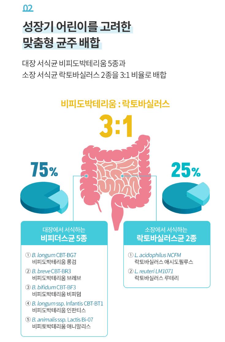2. 성장기 어린이를 위한 맞춤형 균주를 배합했습니다.