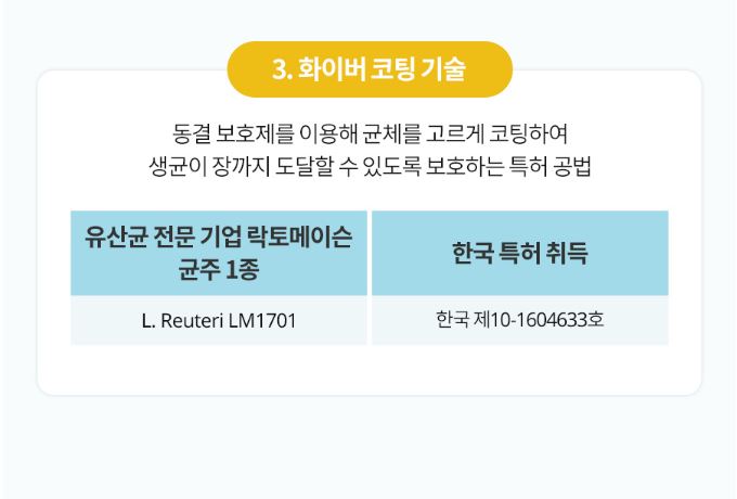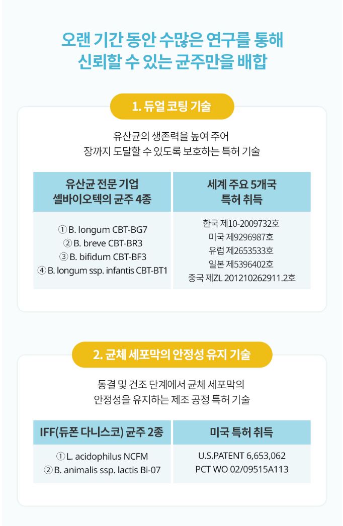 프로바이오틱스가 코팅 특허 기술로 장까지 살아서 도달합니다.