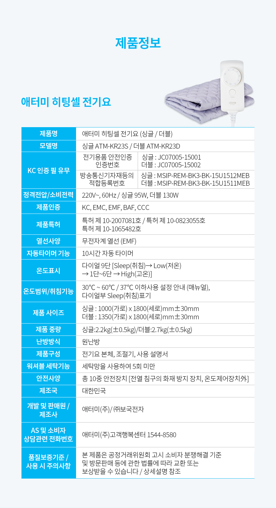애터미 히팅셀 전기요는