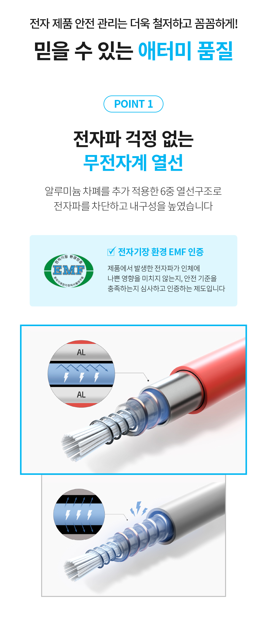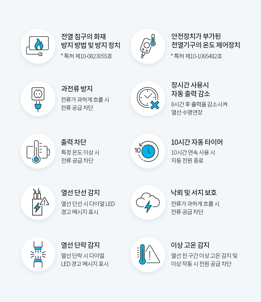 전자파에 안전하게 안전 열선으로 제작 되었습니다.