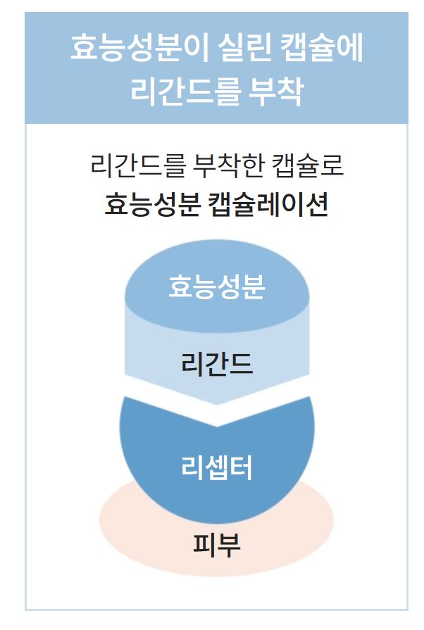 효능성분이 실린 캡슐에 리간드를 부착해서 효능성분을 캡슐레이션 시켜서