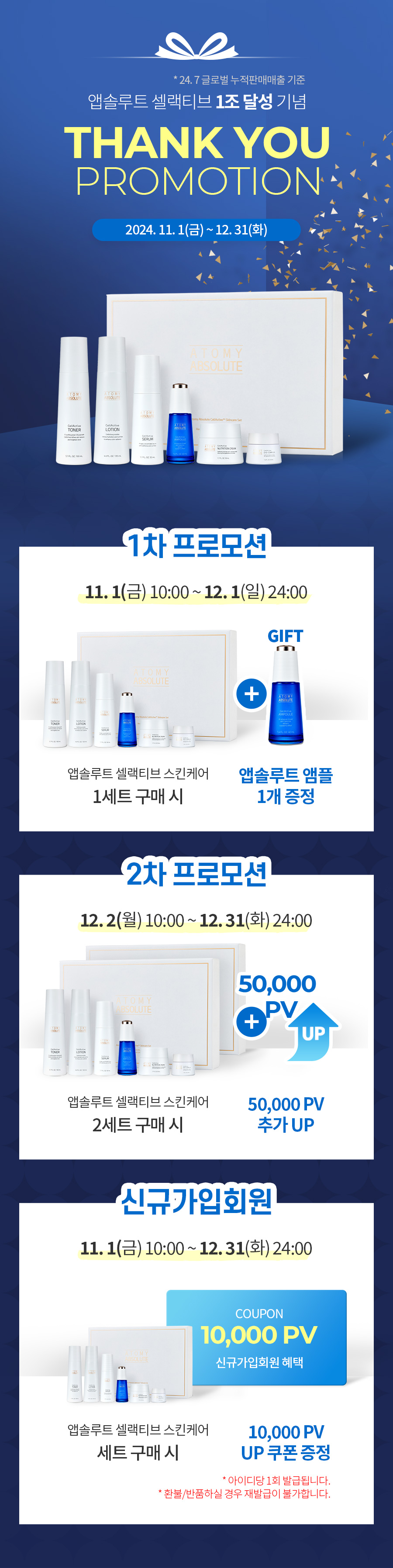 11월 1일부터 12월 31일까지 앱솔루트 누적판매 1조 달성 기념으로