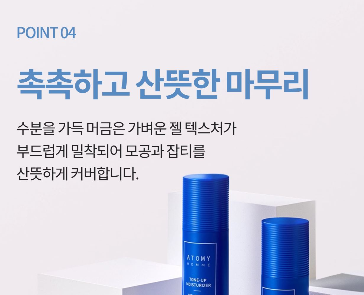애터미 옴므 톤업 모이스춰 라이저는 수분감과 진정효과를 함께 가져가실 수 있습니다.