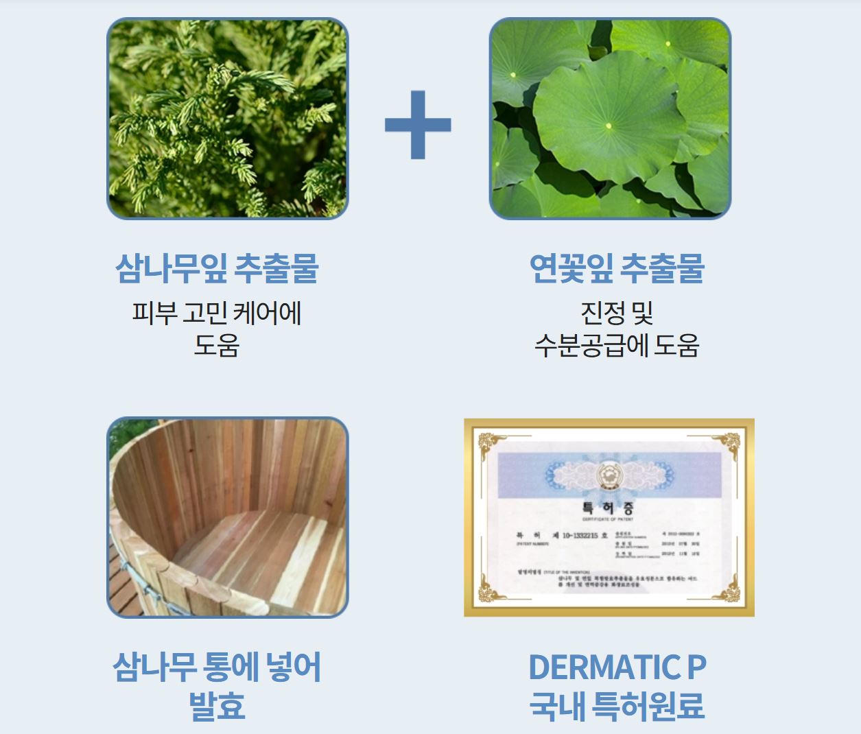 삼나무잎과 연꽃잎 추출물을 넣어 발효시킨 원료를 함유하고 있습니다.