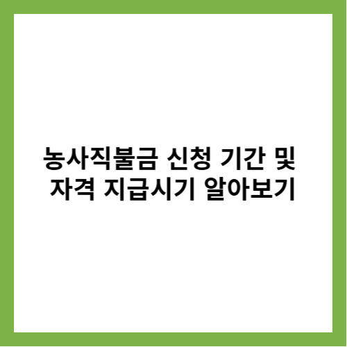 1.농사직불금 신청자격 : 농업인 또는 농업법인으로, 농업외 소득이 3,700만원 미만인 자