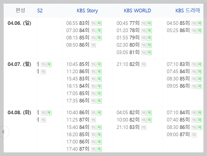 신데렐라게임의 재방시간은 아래와 같다