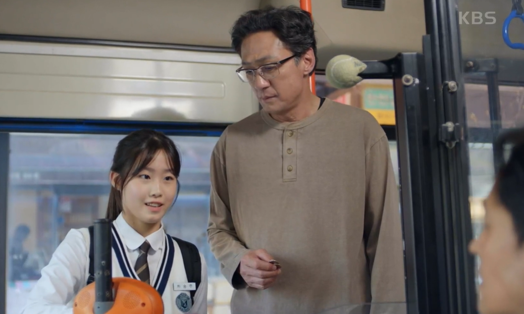 버스카드가 없어서 기사님과 실랑이를 하고 뒤에 따라 오던 학생이 버스비를 계산해준다..
