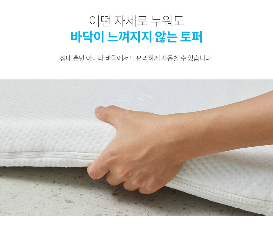 침대뿐 아니라 바닥에서 사용할 때에도 누워있을 때 전혀 바닥이 느껴지지 않습니다.