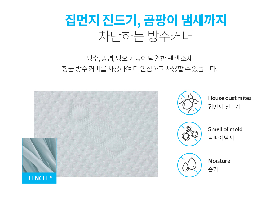 방수, 방염, 방오 기능이 탁월한 텐셀 소재로 항균 방스 커버를 사용하여 더 안심하고 사용할 수 있습니다.