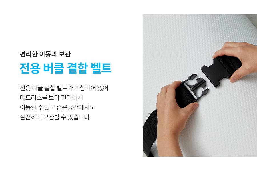 또한 이동이나 보관이 필요할 때 간편하게 말아서 보관 및 이동할 수 있도록 전용버클 결함 벨트도 함께 드립니다.