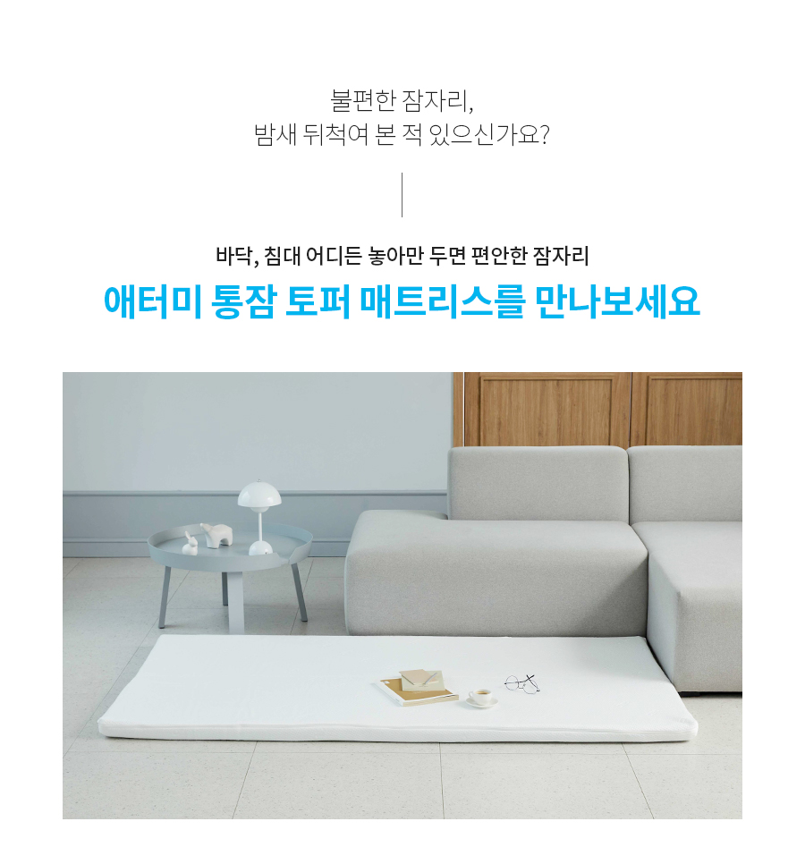 애터미 통잠 토퍼 매트리스는 건가아고 쾌적한수면을 선사해줍니다.