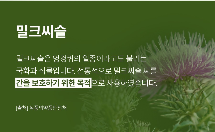 전통적으로 밀크씨슬 씨를 간을 보호호하기 위한 목적으로 사용하였습니다. -출처 : 식품의약품안전처-