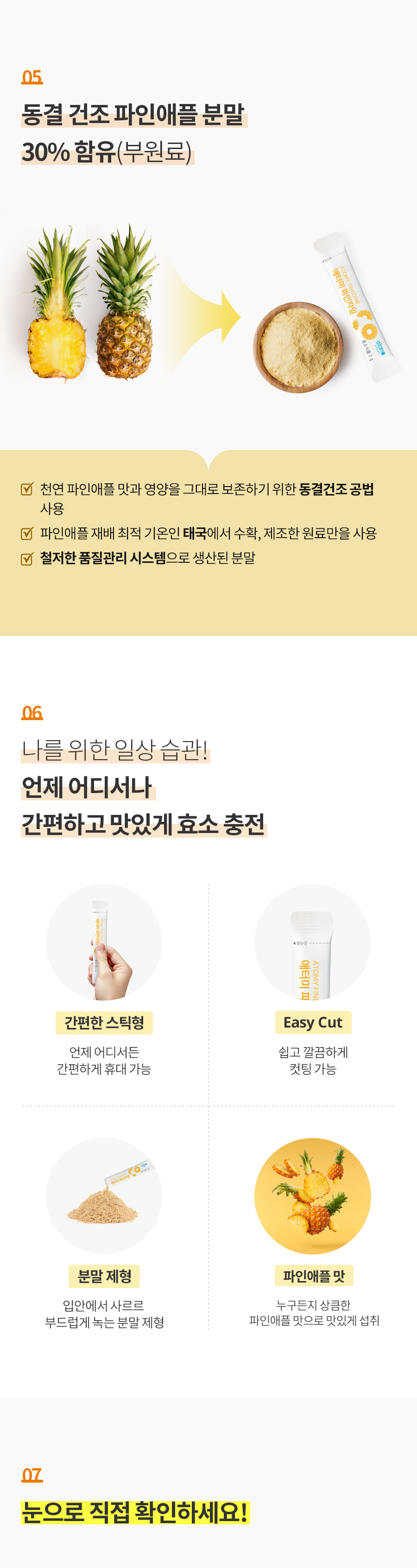 상큼한 파인애플 맛 효소로 가볍고 속편한 하루를 만들어가세요.