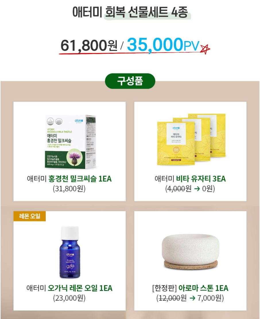 애터미 회복선물세트 4종 61,800원 에 구매가능합니다.