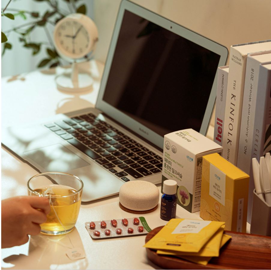 STEP1. 피곤하고 회복이 필요하다면 홍경천 밀크씨슬을 충분한 물과 함께 섭취해주세요. 기호에 따라 비타유자티를 시원하게 혹은 따뜻하게 한잔 마셔보세요.