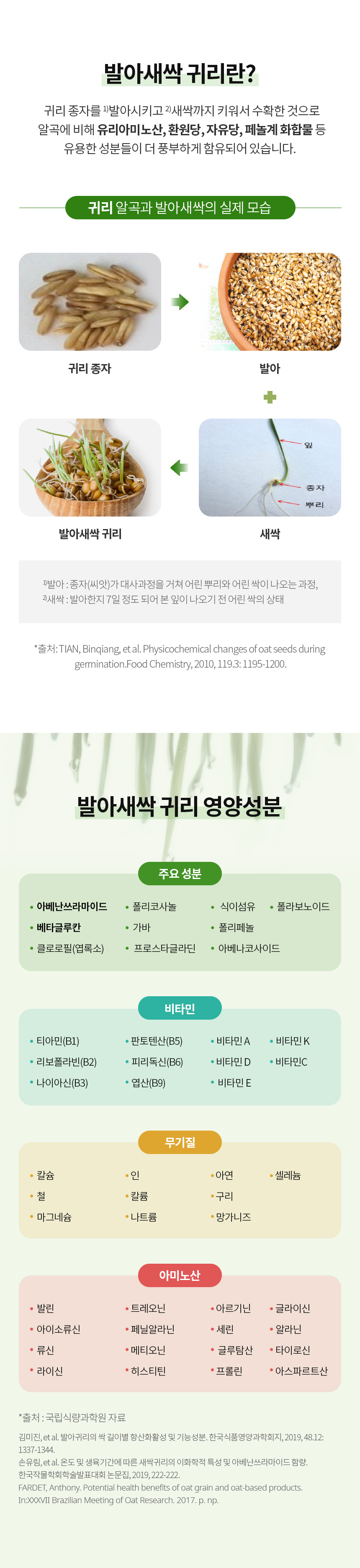 이 성분은 귀리에서 발아하는 순간 아베난쓰라마이드 함량이 더욱 증가합니다.